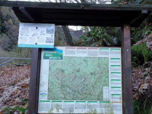 Lasciata l’auto, si prosegue seguendo il corso del torrente fino a raggiungere in circa 15 minuti un cartello con la cartina (970 m).