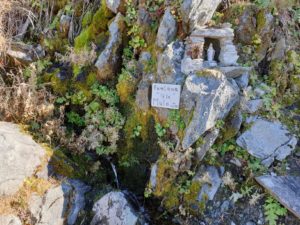 Il sentiero prosegue inerpicandosi sul fianco della montagna salendo in modo deciso. Dopo un po’, si incontra una sorgente dove è possibile rifornirsi d’acqua (2037 m).
