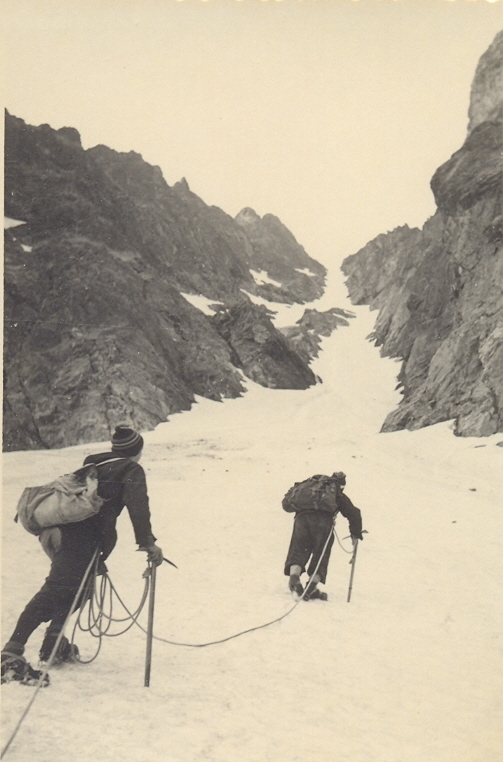 En el refugio, por la mañana temprano o de noche, hierve la vida. Los alpinistas se preparan para la ascensión llenos de espera y también de preocupaciones. Cuando salen del refugio se unen unos a otros. Cuando se está unido por la cuerda la vida de uno se confía a la del otro. Se sale en cordada, listos para ayudarse mutuamente, para poner al compañero en las mejores condiciones para la ascensión.
