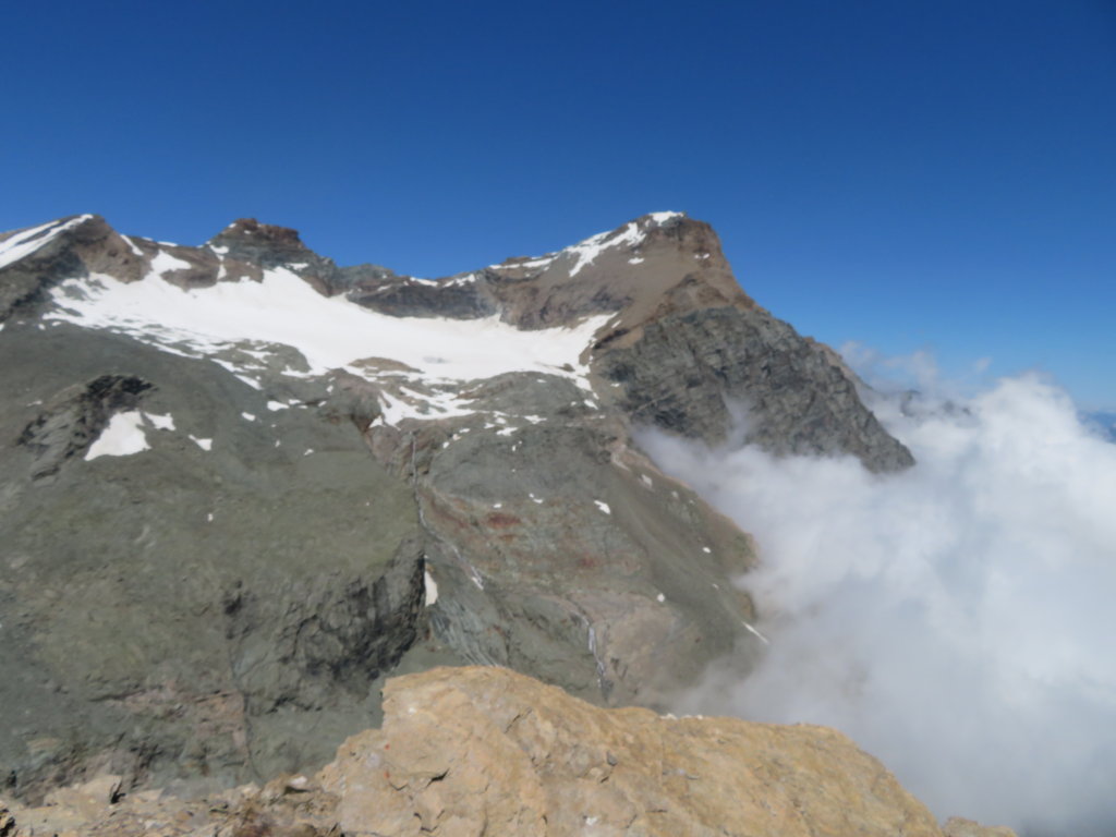 Prima parte sulla Via Normale (Cresta Sud-Est) su placche friabili di calcescisti. Poi si allarga la cresta e con pendii ci si abbassa e si guadagna una valletta. Da lì siamo tornati per il percorso dell’andata più diretto, senza guadagnare il filo della morena del Ghiacciaio della Bessanese. Si raggiunge il Rifugio Gastaldi e poi il Pian della Mussa. (Occorre tenere presente che il percorso è lungo).