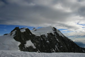 È stato un evento molto grosso perché nella parete est c’era un chiarissimo segno di una valanga innescata dal crollo della cornice. Dalla foto della cresta, si può vedere che il crollo è molto vicino alla traccia normale, un evento molto importante: sarà una trentina di metri di lunghezza per una larghezza di 6/7 metri.