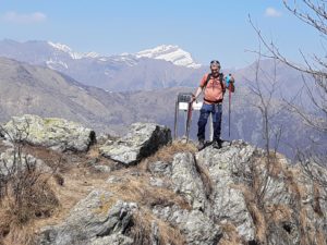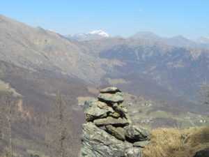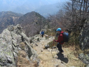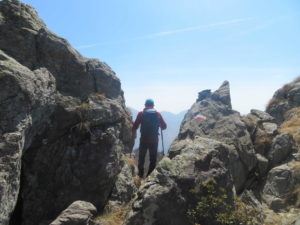 Si prosegue quindi sulla costa di roccette, percorso non difficile, talvolta un po’ esposto, per raggiungere la “segnalata” cima dell’Uja di Calcante, 1614 m.