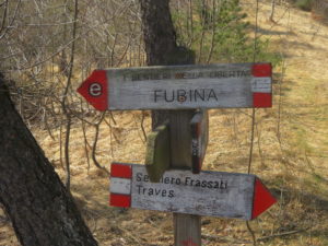 Da qui si scende a destra sul sentiero n. 135 percorrendo un ripido tratto fra i pini fino a incrociare il sentiero che proviene da Fubina.