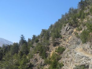 Inizialmente la discesa su roccette è su decisa pendenza.
